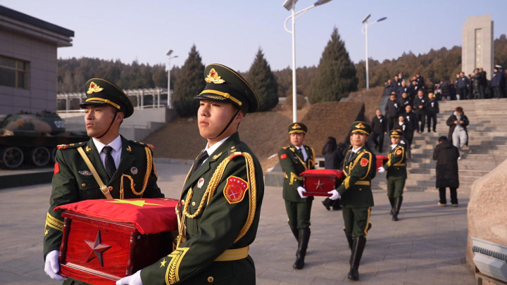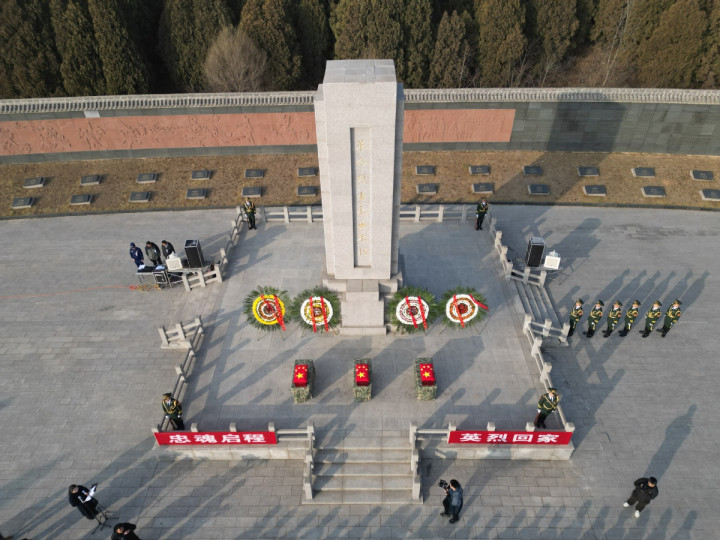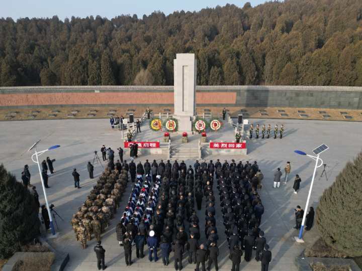 1月28日上午,在山西省长治市黎城县烈士陵园,一场庄严肃穆的烈士遗骸送别仪式正在举行。新华社记者原勋 摄